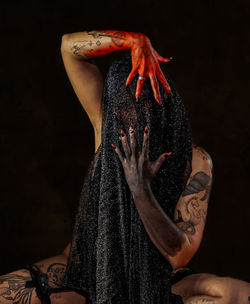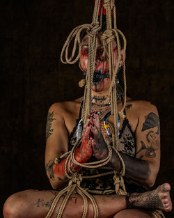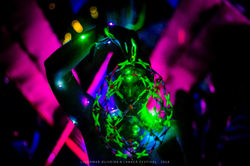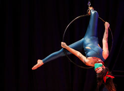 Especialista em suspensão capilar, shibari e lira acrobática, busca explorar as sensações de forma sinestésica e integrar diversas metodologias para criar algo autêntico e inédito.